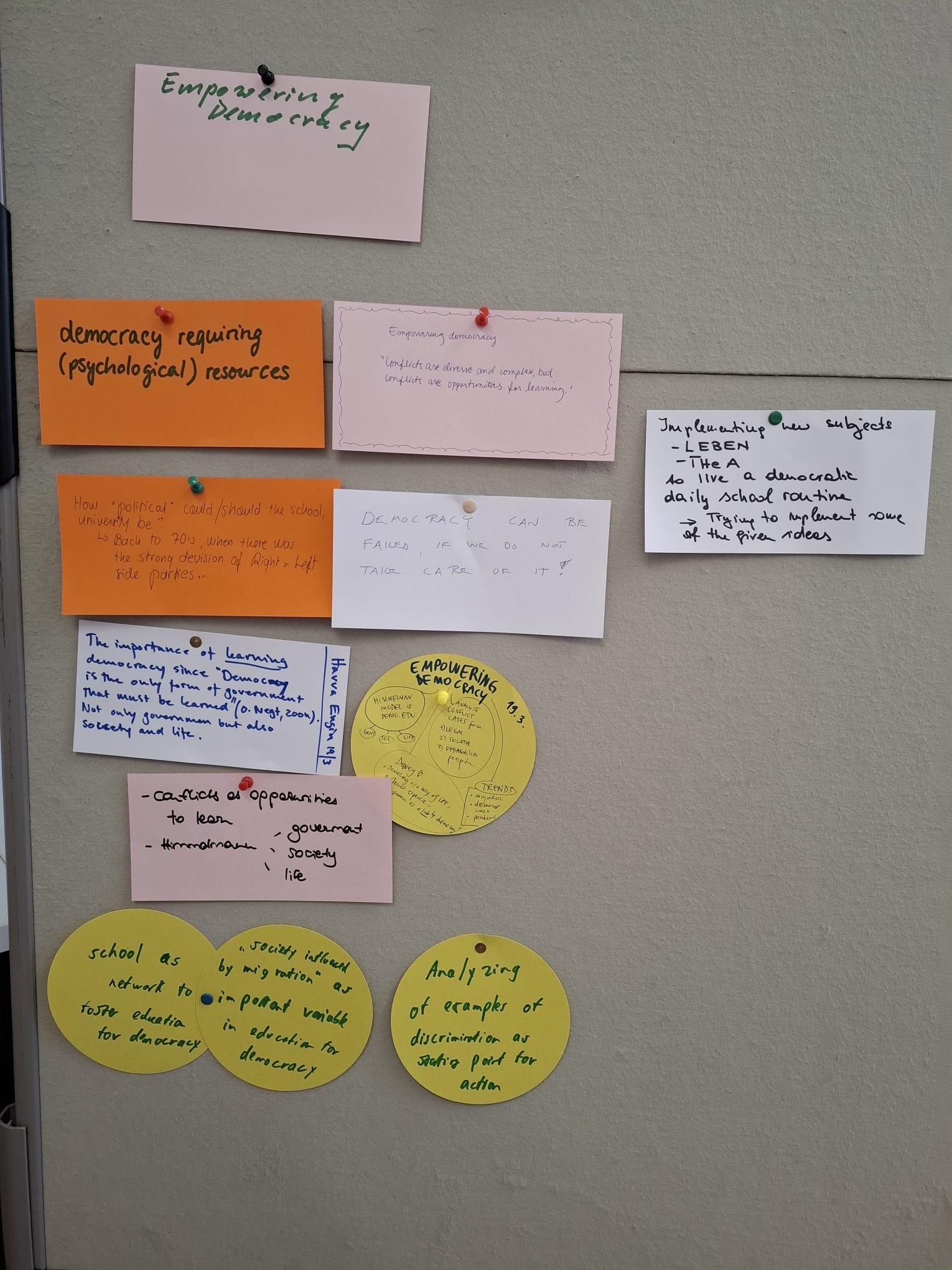 Inhaltlich spannte das Programm einen Bogen von grundlegenden Konzepten bis hin zu konkreten Praxisbeispielen: In ihrer Keynote eröffnete Prof. Dr. Monika Oberle (Goethe-Universität Frankfurt) einen differenzierten Blick auf Demokratie als Lebens-, Gesellschafts- und Regierungsform und zeigte zentrale Prinzipien, Konzepte und Aspekte der Demokratiebildung auf. Die anschließenden Workshops und Sessions boten hierzu vielfältige Zugänge: Diskutiert wurden unter anderem die Rolle von Bildung als humanistische und gesellschaftliche Verantwortung (Prof Dr. Ulrike Graf, PH Heidelberg) oder der Umgang mit kontroversen Themen im Unterricht am Beispiel Chinas (Dr. Stefanie Elbern und Jonas Schmid, ChinaSchulAkademie). Dr. Christian Mühleis (PH Heidelberg) und Dr. Daniel Vetter beleuchteten innovative didaktische Ansätze wie Planspiele in der politischen Bildung, während Prof. Dr. Jochen Laub (PH Heidelberg) die ethische Dimension von Nachhaltigkeit in der Demokratiebildung in den Blick rückte. Auf die demokratiestützende Rolle der Bildung in einer diversen Gesellschaft verwies Prof. Dr. Havva Engin in ihrem Vortrag.