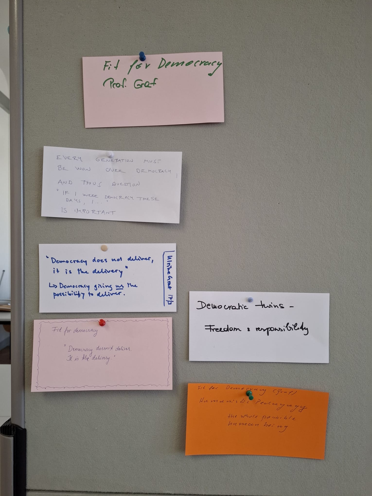 Ein besonderes Highlight stellte der Einblick in die Praxis dar: Die mit dem Demokratiepreis des Deutschen Schulpreises ausgezeichnete Ernst-Reuter-Schule Karlsruhe demonstrierte anhand konkreter Beispiele, wie partizipative Schulentwicklung, fächerübergreifende Lernformate und eine konsequente Einbindung von Schüler:innen Demokratie für die gesamte Schulgemeinschaft erfahrbar machen. Formate wie das themenorientierte Arbeiten zu globalen Nachhaltigkeitszielen oder das schulische Beteiligungskonzept „Roter Salon“ veranschaulichten eindrücklich, wie demokratische Kompetenzen systematisch gefördert werden können und welch große Bedeutung einer entsprechenden Haltung, aber auch Vertrauen, Autonomie und Verantwortung dabei zukommt.