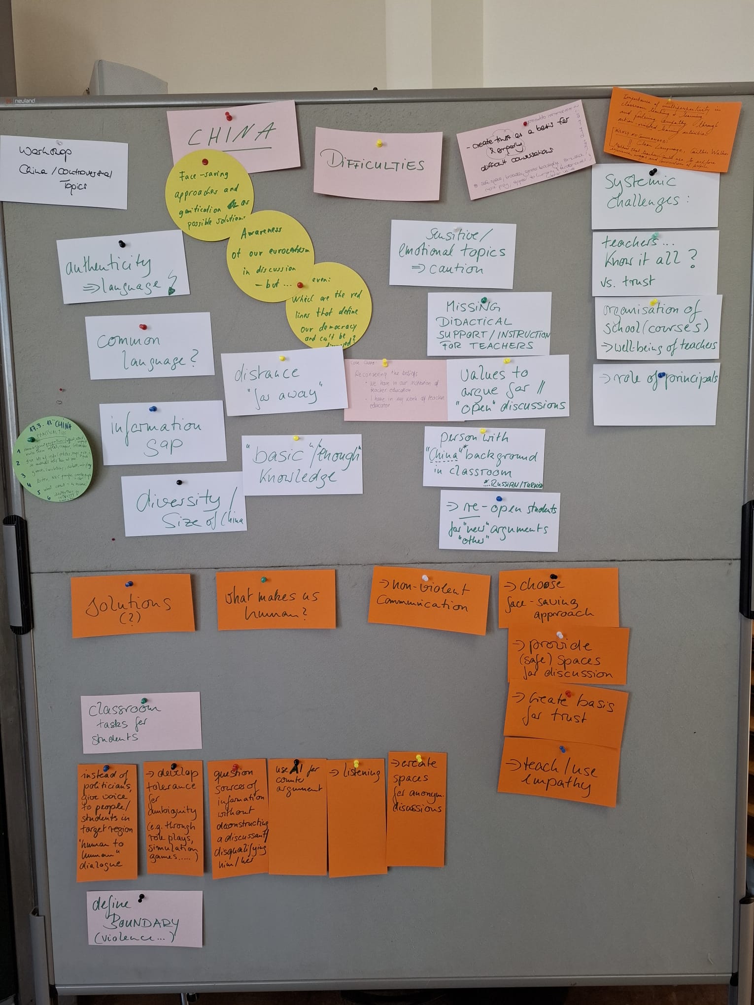 Inhaltlich spannte das Programm einen Bogen von grundlegenden Konzepten bis hin zu konkreten Praxisbeispielen: In ihrer Keynote eröffnete Prof. Dr. Monika Oberle (Goethe-Universität Frankfurt) einen differenzierten Blick auf Demokratie als Lebens-, Gesellschafts- und Regierungsform und zeigte zentrale Prinzipien, Konzepte und Aspekte der Demokratiebildung auf. Die anschließenden Workshops und Sessions boten hierzu vielfältige Zugänge: Diskutiert wurden unter anderem die Rolle von Bildung als humanistische und gesellschaftliche Verantwortung (Prof Dr. Ulrike Graf, PH Heidelberg) oder der Umgang mit kontroversen Themen im Unterricht am Beispiel Chinas (Dr. Stefanie Elbern und Jonas Schmid, ChinaSchulAkademie). Dr. Christian Mühleis (PH Heidelberg) und Dr. Daniel Vetter beleuchteten innovative didaktische Ansätze wie Planspiele in der politischen Bildung, während Prof. Dr. Jochen Laub (PH Heidelberg) die ethische Dimension von Nachhaltigkeit in der Demokratiebildung in den Blick rückte. Auf die demokratiestützende Rolle der Bildung in einer diversen Gesellschaft verwies Prof. Dr. Havva Engin in ihrem Vortrag.